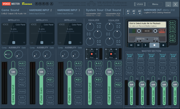 Now you need to open Voicemeeter Banana and you'll see a screen like this.